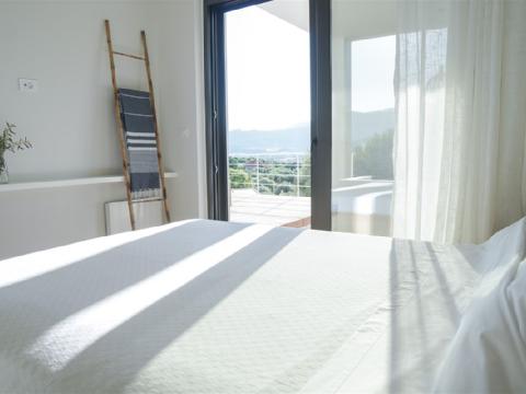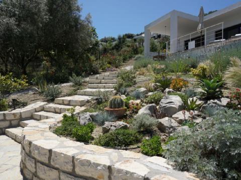 Villa Gianna Mariais a modern villa located in the authentic Greek village of Pogonia at the Ionian Sea. Due to its higher location it has a great view over the valley and the mountains. Surrounded by olive trees and a Mediterranean garden with a terrace, you have your own Greek place with privacy to spend your holiday and where you can leave a busy life behind.
