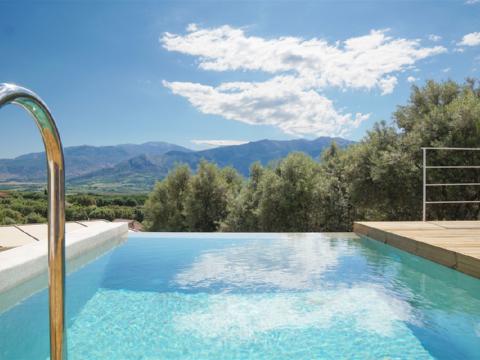 Villa Gianna Maria is equipped for four persons. It has a main room with sitting -, dining area and kitchen. There are two bedrooms each with an ensuite bathroom. Oustide is a terrace with sunbeds, a splash pool to cooldown and dining area.